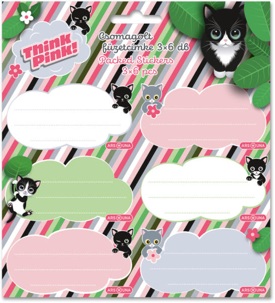Ars Una Think Pink cicás csomagolt füzetcímke 3x6 db-os