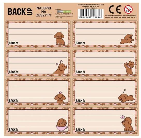 BackUp 8 db-os füzetcímke - Fluffy Puppy (NNZB7A17) cuki, kiskutyás mintával. Az ár 1 ívre értendő.