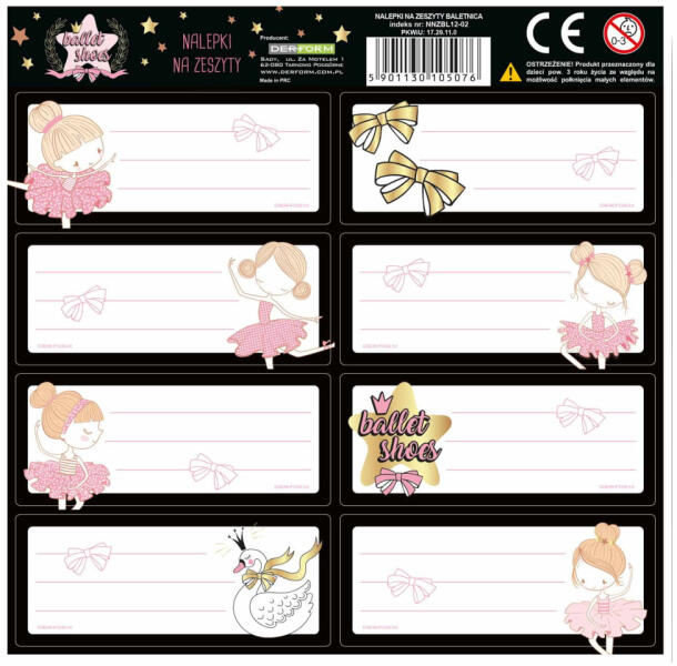 DERFORM Balerina mintás füzetcímke 8 db-os - többféle (NNZBL12)