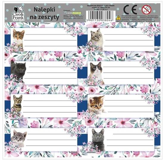 DERFORM Cleo és Frank cicás 8 db-os füzetcímke (NNZCFK) (NNZCFK) - gyerekjatekbolt