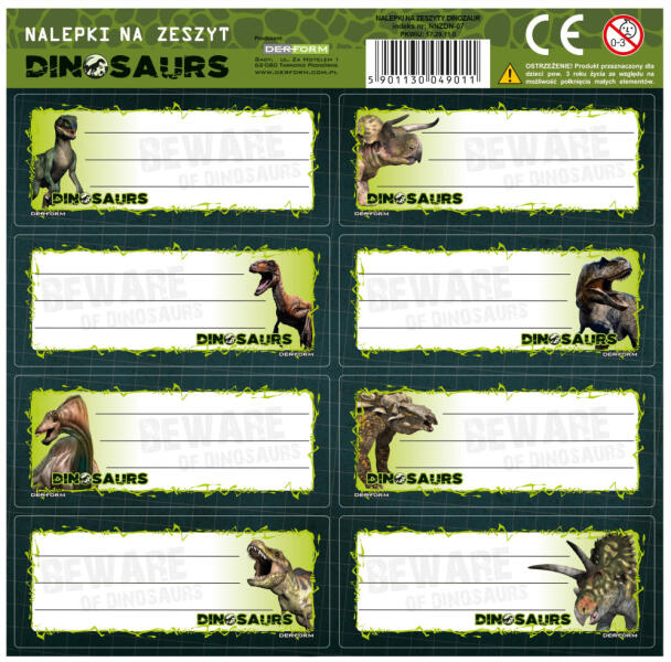 DERFORM Dinoszaurusz füzetcímke 8 db/ív, többféle (DFM-NNZDN)