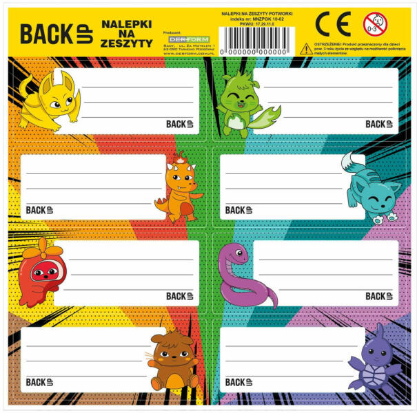 BackUp 8 db-os füzetcímke - Állatkák - kétféle (NNZKZ10) aranyos állatkás mintával. Az ár 1 ívre értendő. A termékváltozat véletlenszerűen kerül kiküldésre.