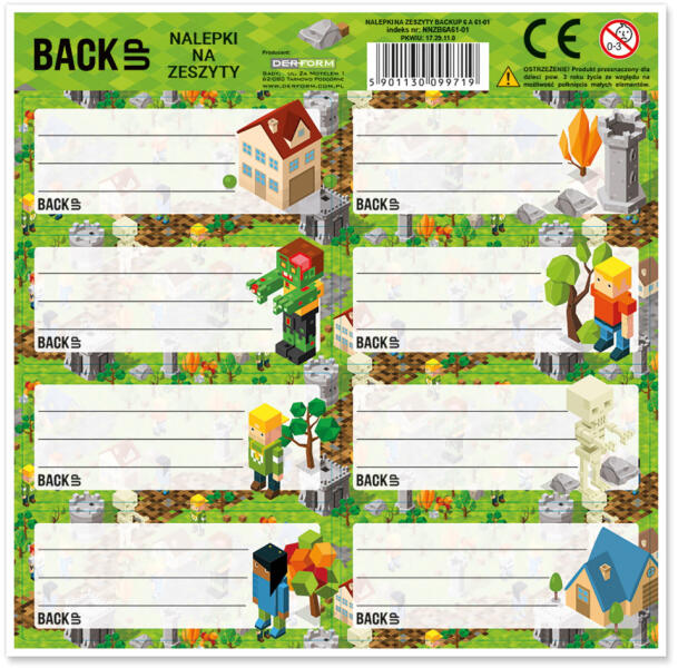 DERFORM Minecraft mintás füzetcímke 8 db/ív, BackUp, A61, 2023 (DFM-NNZB5A61)