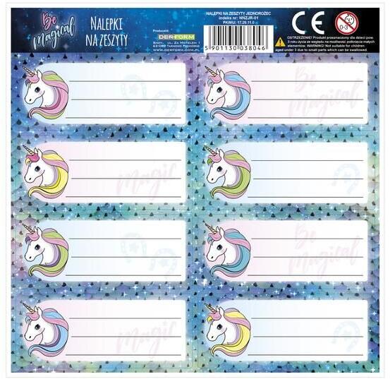 DERFORM Unikornis 8 db-os füzetcímke - többféle (5901130069200)