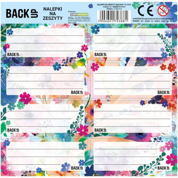 DERFORM BackUp füzetcímke 8 db-os Watercolor Flowers - többféle (NNZB7A10)