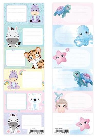 Gyerek Füzetcímkék - 6 db/ív, Állatmintás ??? Vidám, állatmintás füzetcímkék gyerekeknek! Kétféle változatban kaphatóak: az egyikben aranyos vadállatok (zebra, tigris, zsiráf), a másikban tengeri élőlények (teknős, polip, tengeri csillag) szerepelnek. Minden ív 6 db címkét tartalmaz. Jellemzők: 6 db címke/ív Kétféle dizájn közül választhatsz: vadállatok vagy tengeri élőlények Tökéletes iskolába, óvodába Élénk színek és aranyos minták 6 éves kortól ajánlott Mit kapsz? Egy ívet 6 db aranyos állatmintás füzetcímkével.